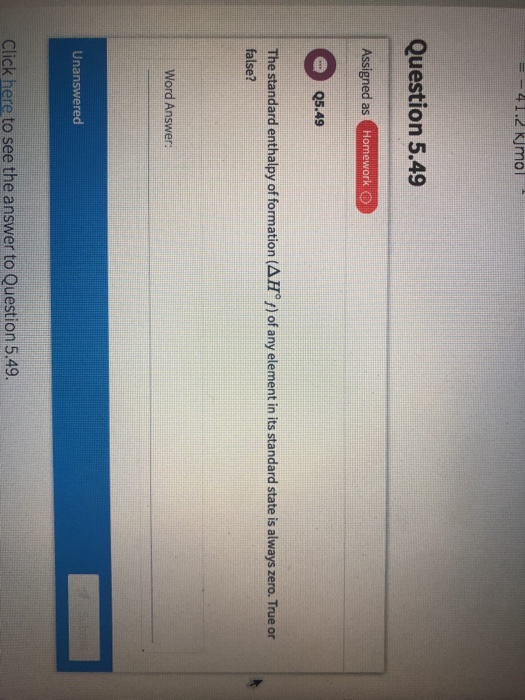 Solved 41 2 Kjmol Question 5 49 Assigned As Tamework Chegg Com