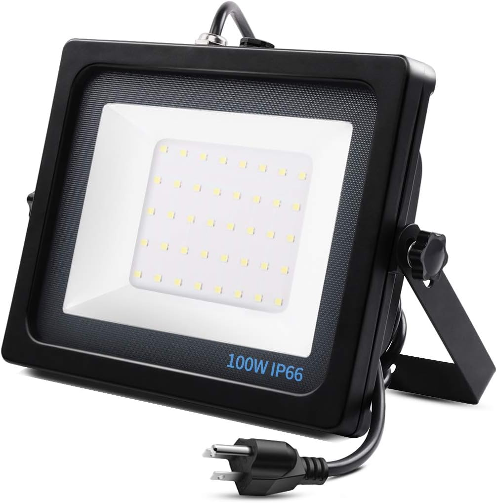 100w Led Flood Light Outdoor Super Bright Security Work Light 500w Halogen Bulb Equivalent Ip66 Waterproof 11000lm 6500k Daylight White Landscape Floodlight Amazon Com