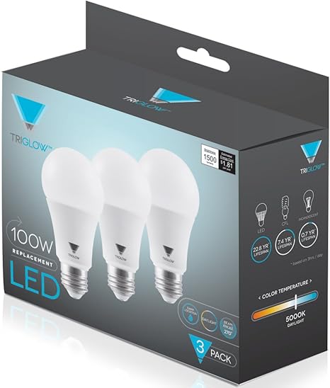 Triglow Led Light Bulbs 100 Watt Equivalent A19 Led Bulbs 5000k Daylight White 1500 Lumens E26 Base Ul Listed Daylight Led Light Bulbs 3 Pack Amazon Com