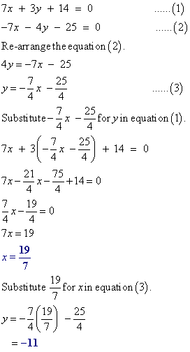 Solve 7x 3y 14 0 And 7x 4y 25 0 Using Substitution Method Mathskey Com