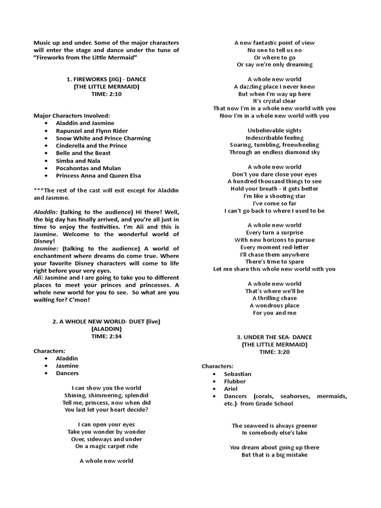 Aladdin Talking To The Audience Hi There Well 3 Under The Sea Dance The Little Mermaid Time 3 20 Characters Leisure