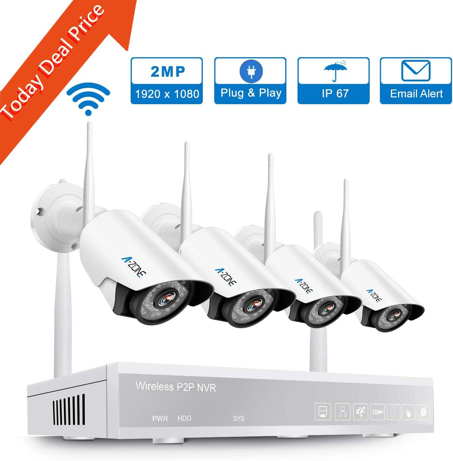 Amazon Com A Zone Wireless Security Camera System 4ch 1080p Full Hd Nvr With 4pcs 1080p Hd Indoor Outdoor Wireless Ip Cameras Night Vision Easy Remote View No Hard Drive Electronics