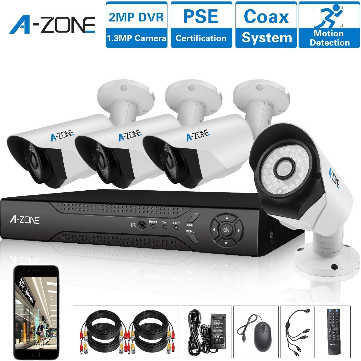 Amazon Com A Zone 4 Channel 1080p Ahd Home Security Cameras System Dvr Kit W 4x Hd 960p 1 3mp Waterproof Night Vision Indoor Outdoor Cctv Surveillance Camera Quick Remote Access Setup Free App