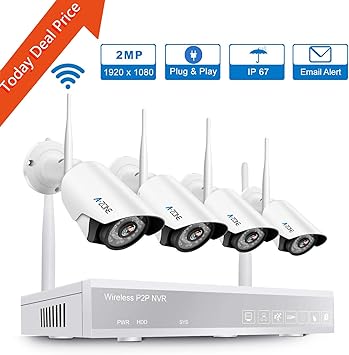 Amazon Com A Zone Wireless Security Camera System 4ch 1080p Full Hd Nvr With 4pcs 1080p Hd Indoor Outdoor Wireless Ip Cameras Night Vision Easy Remote View No Hard Drive Electronics