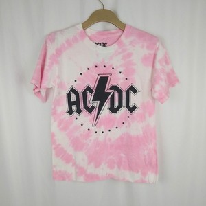New Ac Dc Tie Dye Cropped Graphic Band T Shirt L Pink White Ebay