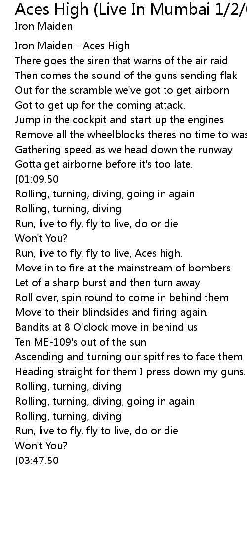 Aces High Live In Mumbai 1 2 08 Lyrics Follow Lyrics
