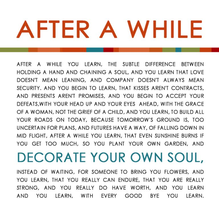 After A While You Learn The Subtle Difference Between Holding A Hand And Chaining A Soul And You Learn That Love Doesn T Mean Leaning And Company Doesn T Mean Security And You Begin