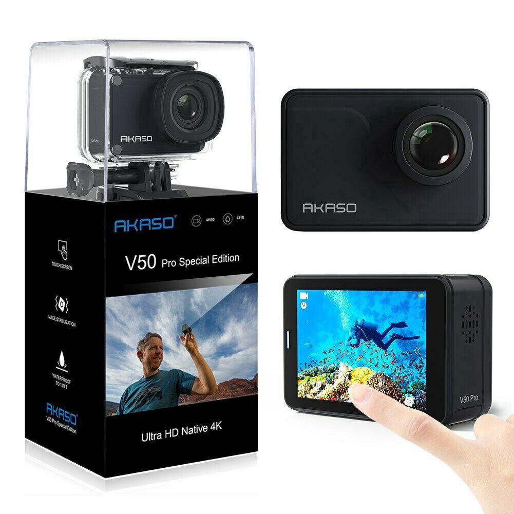 Akaso V50 Pro Native 4k 30fps 20mp Wifi Action Camera With Eis Touch Screen Adjustable View Angle 30m Waterproof Camera Support External Mic Remote Control Sports Camera With Helmet Accessories Kit Buy