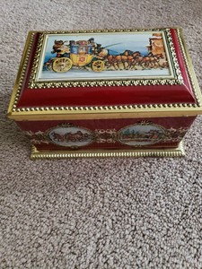 Vintage Klann Western Germany Ornate Red Tin Box Hinged 7in Horse Drawn Carriage Vintage Tins Hinged Lid Tin Boxes