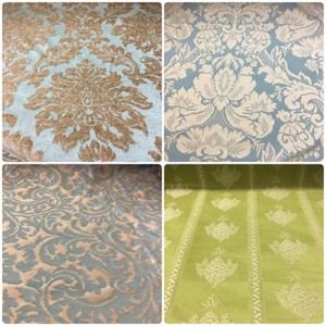 Aqua Blue Beige Buttercream Damask Brocade Velvet Upholstery Drapery Fabric Ebay