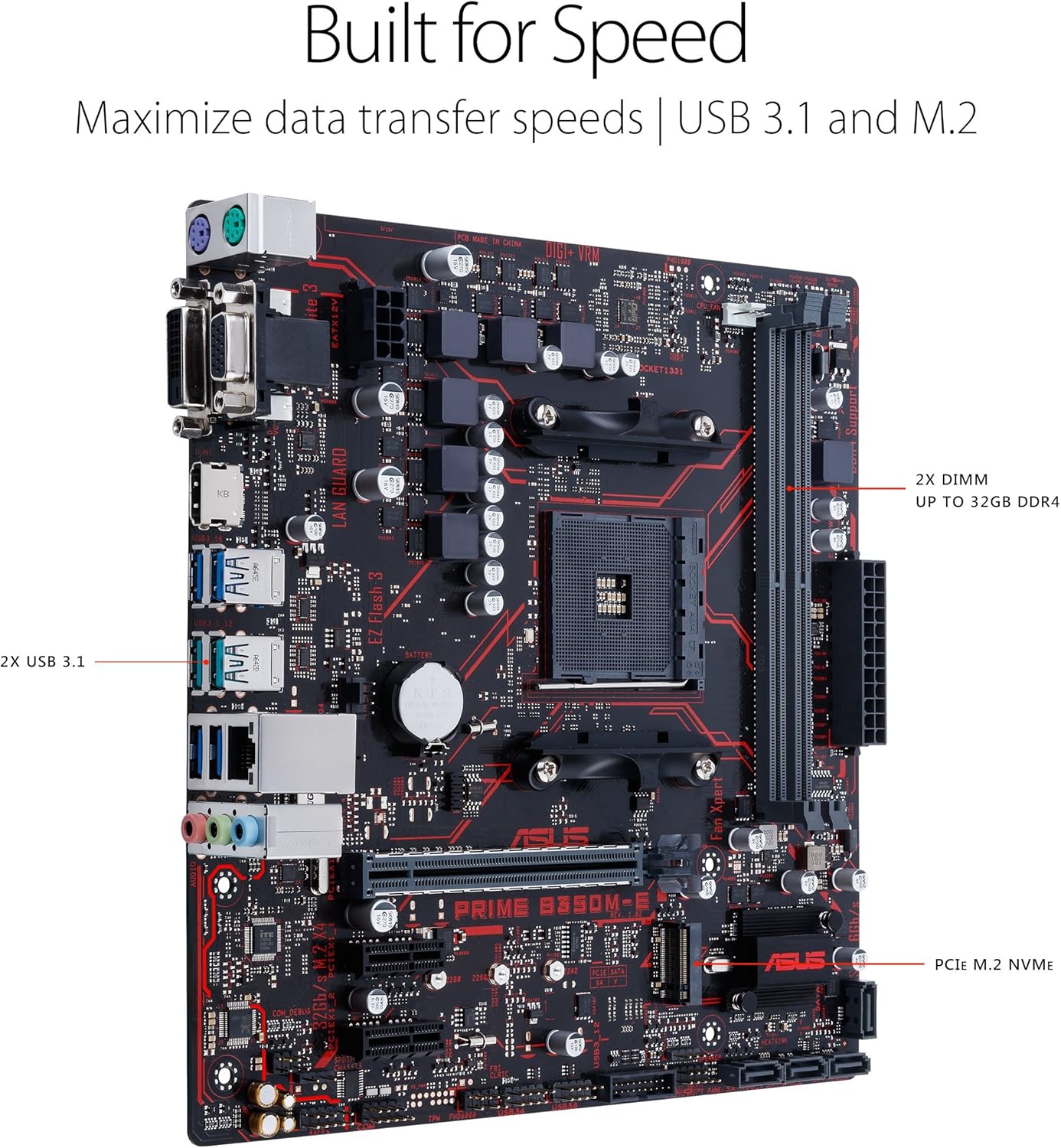 Amazon Com Asus Prime B350m E Amd Ryzen Am4 Ddr4 Hdmi Dvi Vga M 2 Usb 3 1 Uatx B350 Motherboard Computers Accessories