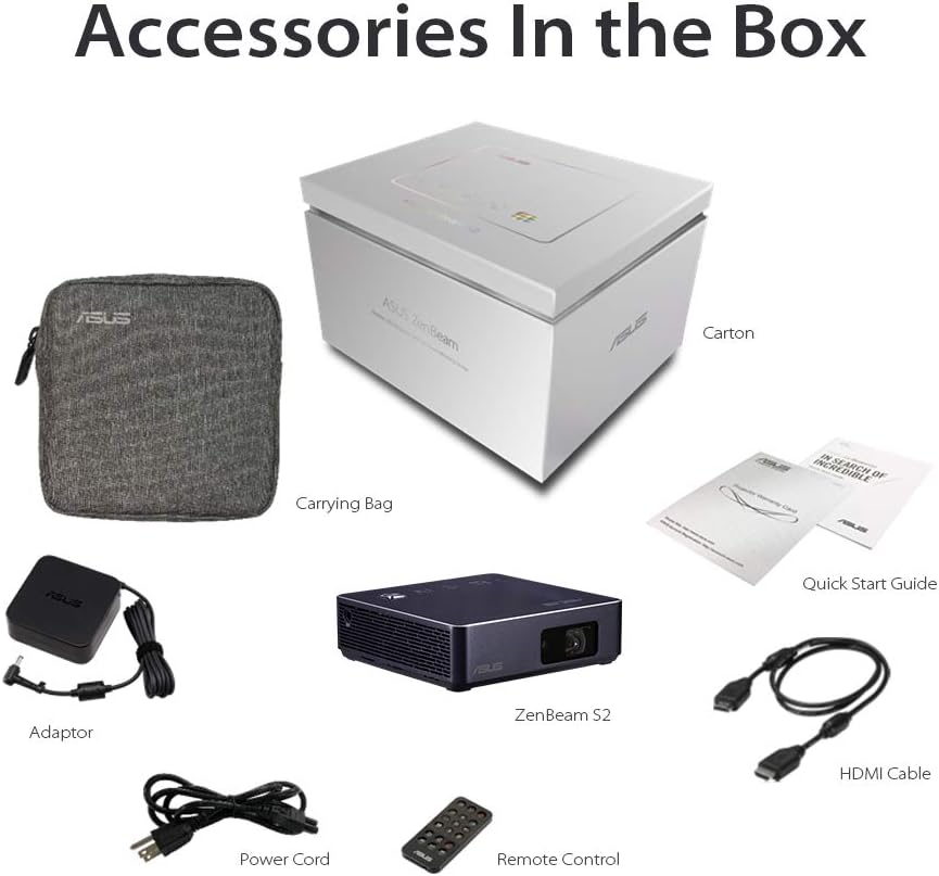 Amazon Com Asus Zenbeam S2 Portable Mini Wireless Projector With Speakers 500 Lumens Native 720p Usb C Hdmi Auto Keystone I Up To 3 5 Hours Battery 2 Years Warranty Electronics