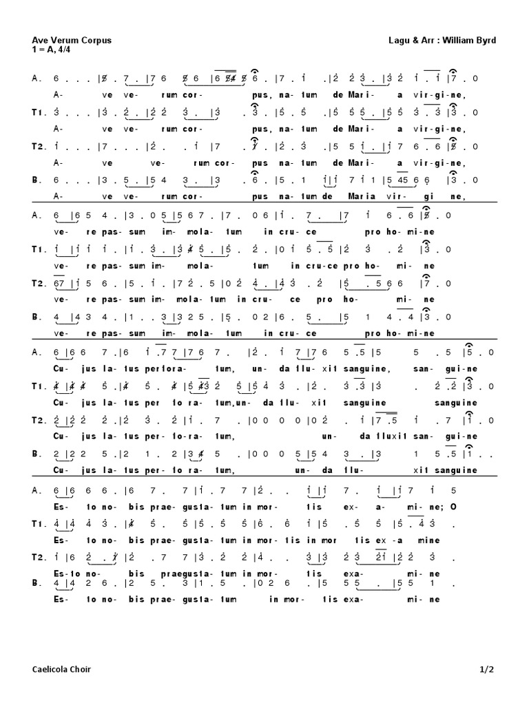 Ave Verum Corpus Byrd Music
