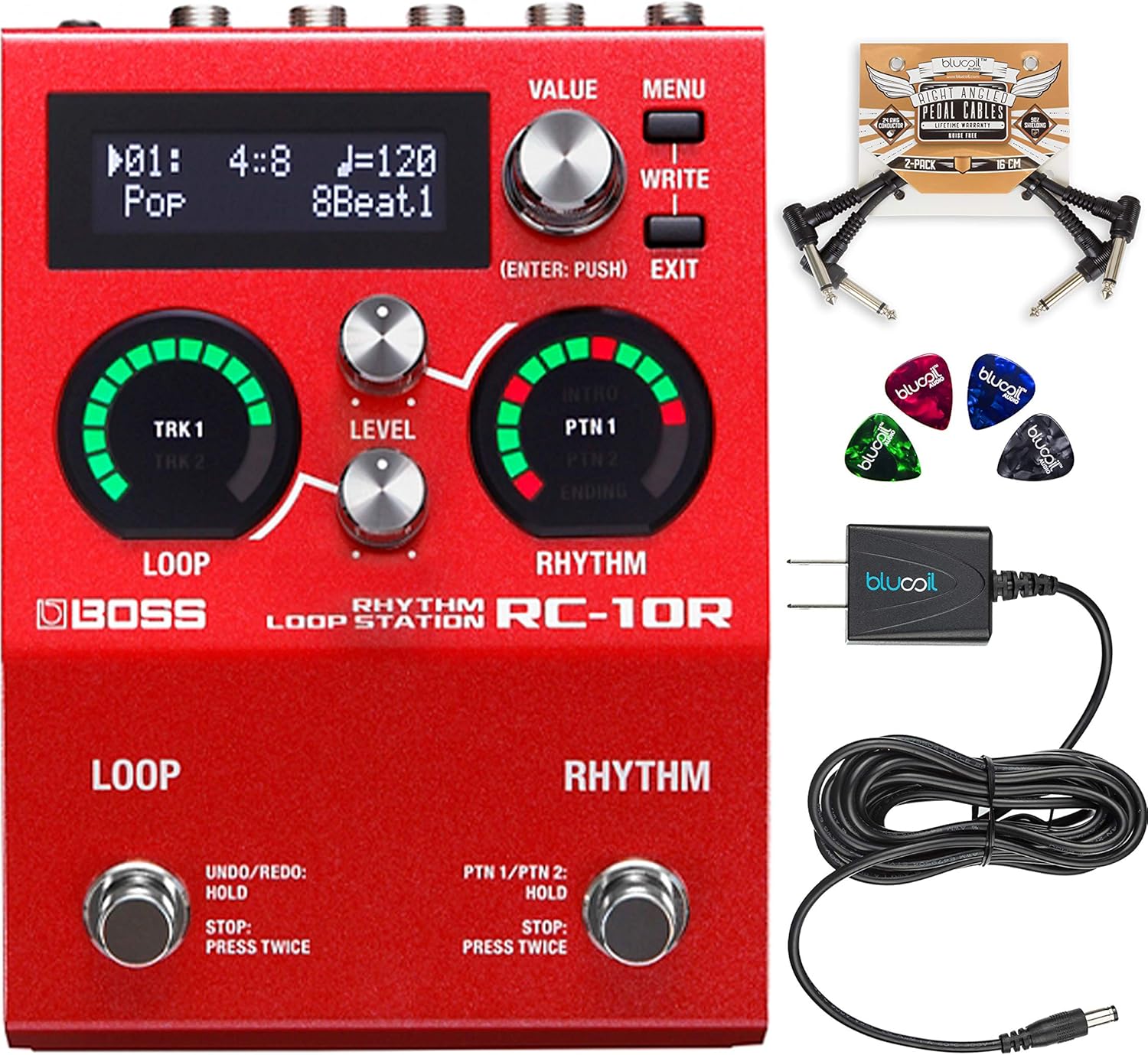 Amazon Com Boss Rc 10r Rhythm Loop Station Stereo Looper Pedal Bundle With Blucoil Slim 9v Power Supply Ac Adapter 2 Pack Of Pedal Patch Cables And 4 Pack Of Celluloid Guitar Picks Musical Instruments