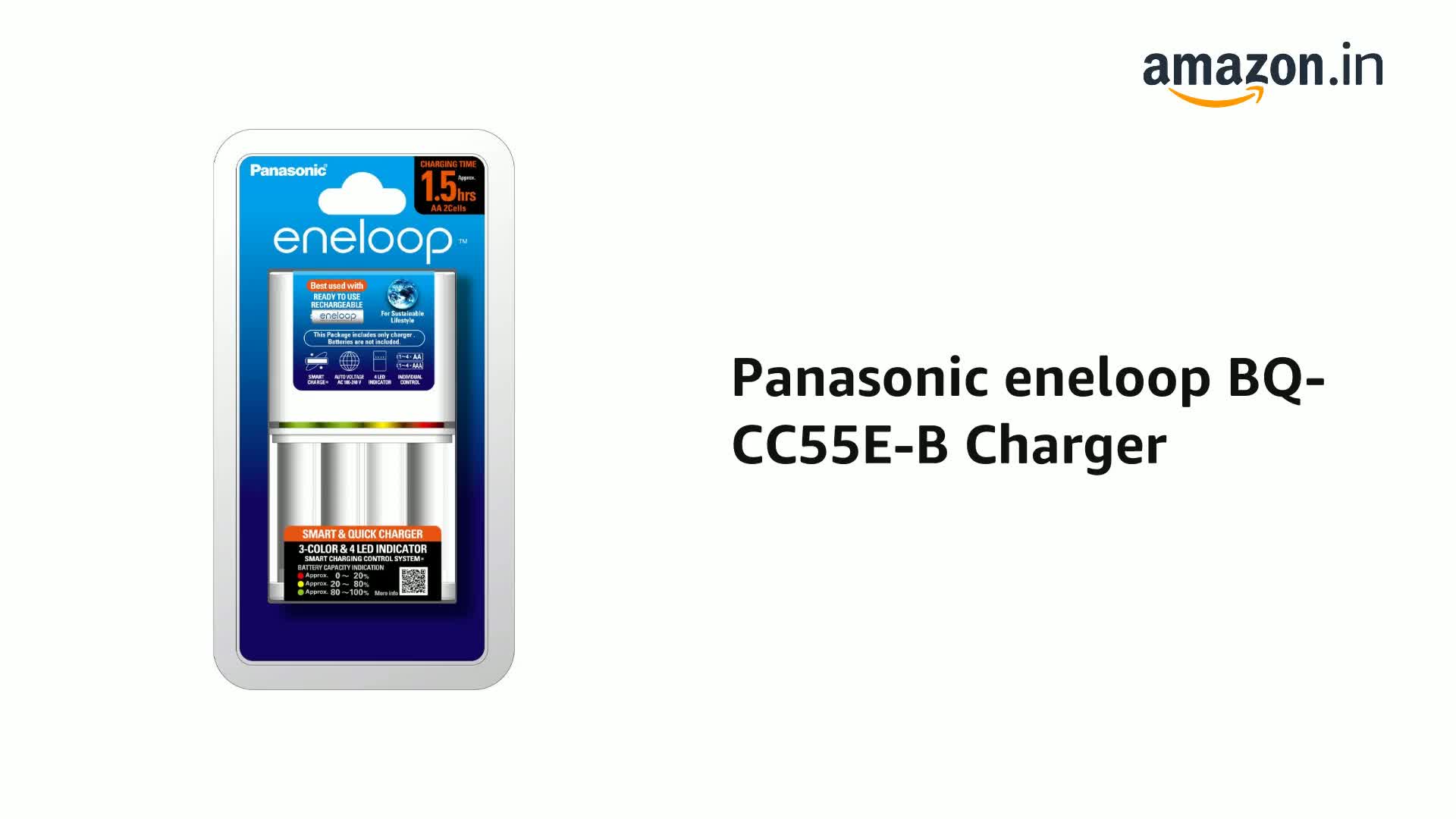 Quick charge can quickly recharge 4 eneloop aa aaa batteries to 100 percent in 4 hours advanced charger with 3 leds that shows the charging status. It has three led indicator. Check out panasonic eneloop bq cc55e b charger reviews ratings features specifications and browse more panasonic products online at best prices on amazon in. Add to wishlist added to wishlist removed from wishlist 0.