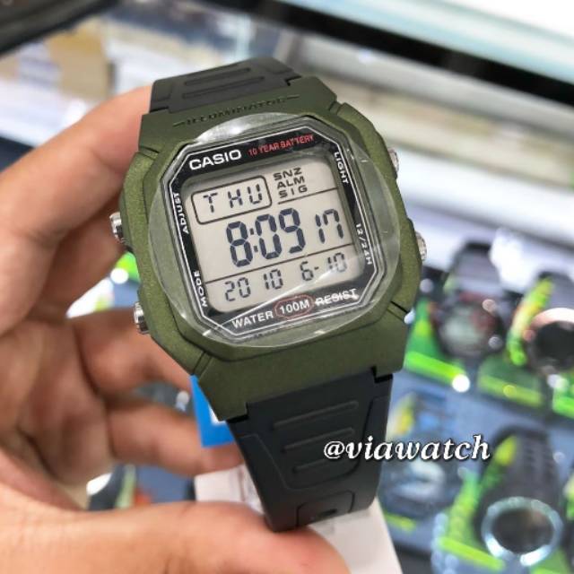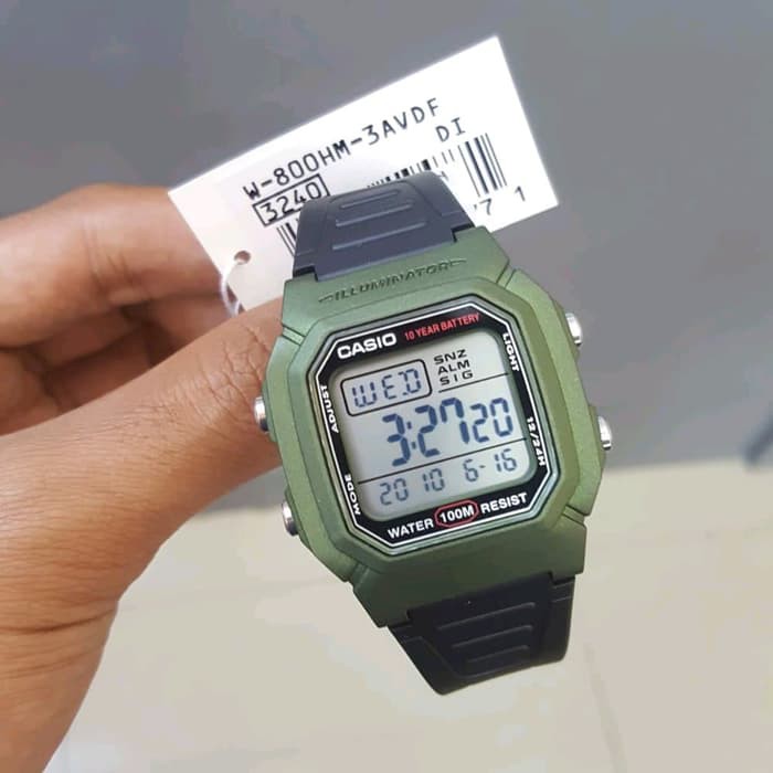 Casio Original W 800hm 3a Green Digital Mens Watch 100m Wr W 800 Original New Ebay