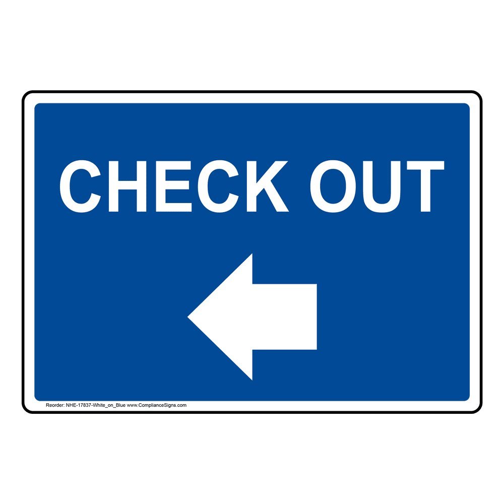 Amazon Com Check Out With Left Arrow Sign 10x7 Inch Plastic For Wayfinding By Compliancesigns Industrial Scientific