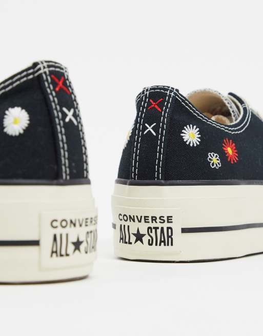 Converse Chuck Taylor Lift Platform Black Embroidered Floral Sneakers Asos