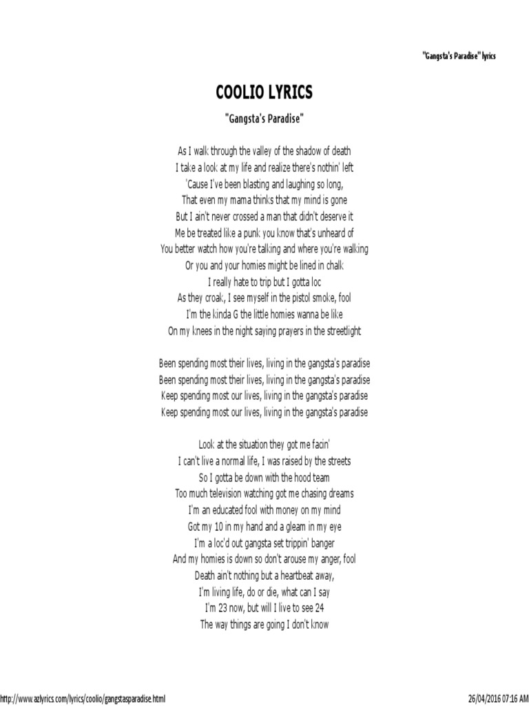 Coolio Gangsta S Paradise Lyrics Analysis Scenario Courses Analysis