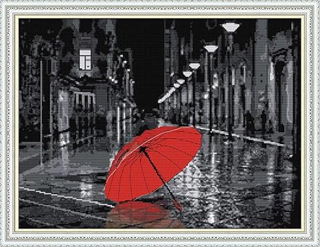Amazon Com Stamped Cross Stitch Kits 14count 51cmx40cm Diy Needle Work For Home Decor The Streets After The Rain