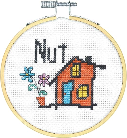 Amazon Com Dimensions Mini Counted Cross Stitch Kit For Beginners Nut House 14 Count White Aida Cloth 4