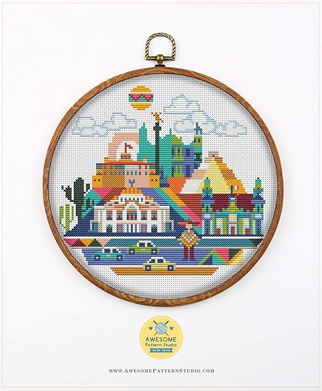 Amazon Com Mexico K158 Counted Cross Stitch Kit 2 Threads Needles Fabrick And 4 Printed Color Schemes Inside Embroidery Pattern Kit Arts Crafts Sewing