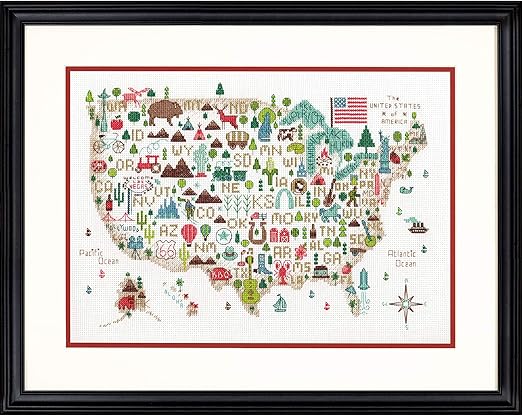Amazon Com Darice Dimensions Illustrated Usa Patriotic 50 States Counted Cross Stitch Kit 14 Count White Aida Cloth 14 X 10 Red