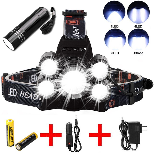50000lm Led Headlamp 5 Head Cree Xm L T6 18650 Headlight Flashlight Torch Lamp For Sale Online Ebay