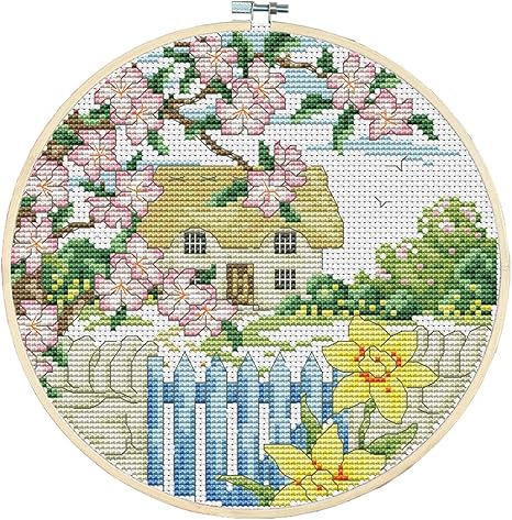 Captaincrafts New Stamped Cross Stitch Kits Preprinted Pattern Counted Embroidery Starter Kits For Beginner Kids And Adults Four Seasons Home Landscape Spring Stamped 11ct Amazon Co Uk Kitchen Home