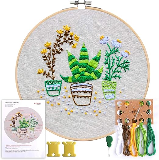 Amazon Com Meian Embroidery Kit For Beginners Adults Cross Stitch Patterns Starter Kits For Kids Including 1 Piece Embroidery Pattern 1 Bamboo Embroidery Hoop Full Range Of Embroidery Color Floss Kit